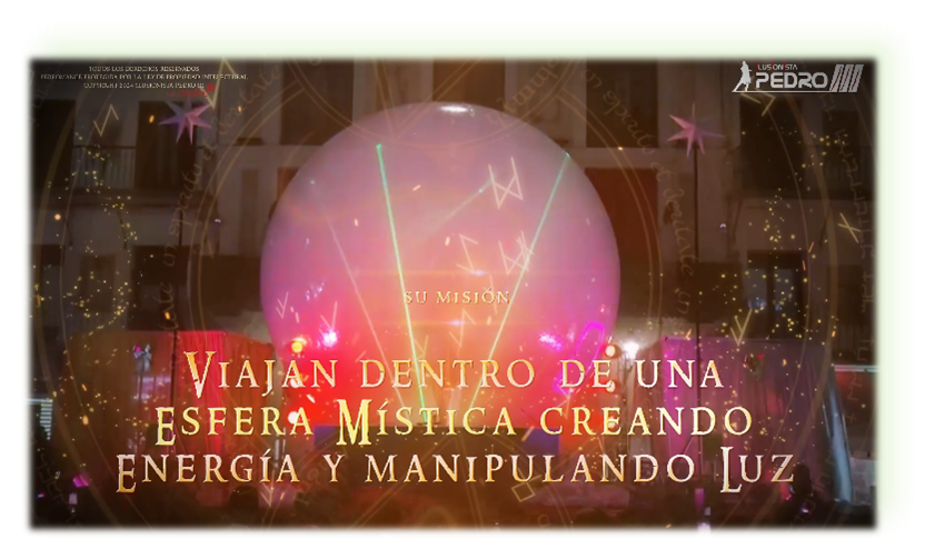 🔮 El resultado: una performance artística original y exclusiva. Dentro de una imponente esfera transparente de 5 metros de altura, el artista manipula haces de luz láser de forma coordinada, creando figuras danzantes en un ambiente de ciencia ficción potenciado por niebla escénica y una escenografía celestial que sincroniza la iluminación con cada movimiento.